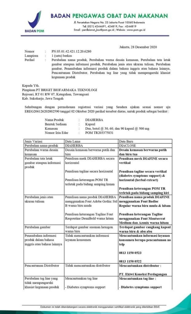 PRODUK TELAH DISERTIFIKASI OLEH KEMENTERIAN KESEHATAN, POM TR203375831